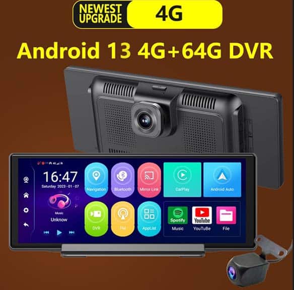 4G Android 13 KAZA 10.3″ Multimedia System with Navigation, ADAS, Dashcam and KAZA-CAMSAM PLUS Radar Warning.