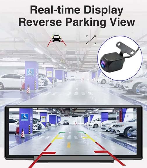 - Built-in dashcam with continuous recording
