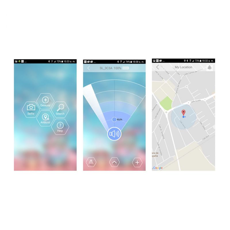 Discreet and practical miniature device that will help you to avoid frustrating losses (objects, people, pets, etc.). With Bluetooth connection of up to 50 m in an open space, you can hang it next to your keys, baggage, handbag, wallet, or even to place it on your pet’s collar, place it on children or elderly persons, etc. It also has other useful functions such as remote trigger for cameras to take selfies or family pictures, telephone finder, and location of lost object in map, call function, etc.