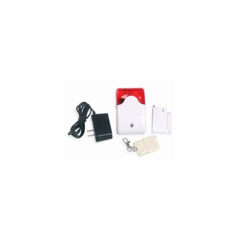 The system consists of an alarm host, wireless remote control, and wireless magnetic switch. When an intruder invades the protected range, the wireless magnetic switch or PIR detector will transmit an alarm signal to the alarm host, and the host will immediately trigger the sound alarm and flash. If the active sensor (volumetric, magnetic, etc.) is also coupled with an Alertacam V90 camera, you will receive an SMS notification and an image on your mobile phone. It also works with other Alertacam sensors: smoke, gas, water, etc.