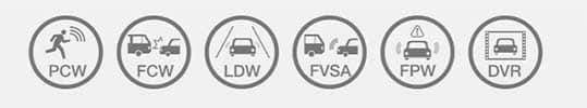 El conductor recibirƔ notificaciones (FCW, LDW, PCW, FVSA, FPW, SLR) a travƩs de una pantalla frente al conductor cuando ocurran eventos en la carretera.