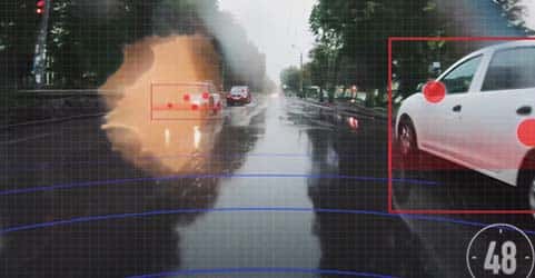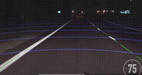 - Its front camera detects vehicles, pedestrians, bicycles, motorcycles, and lane markings on the roads.