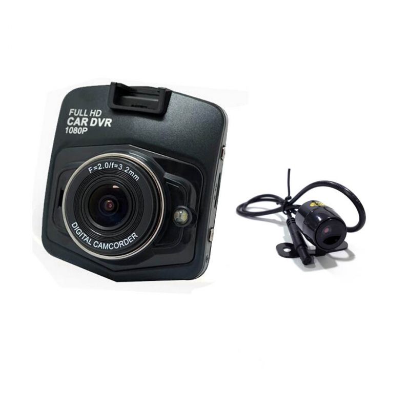 Front and rear camera recording when you move in reverse, with parking guidelines.