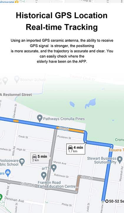 • Set alerts using geo-fencing (delimiting a user-defined space to receive a notification if the person leaves the area),