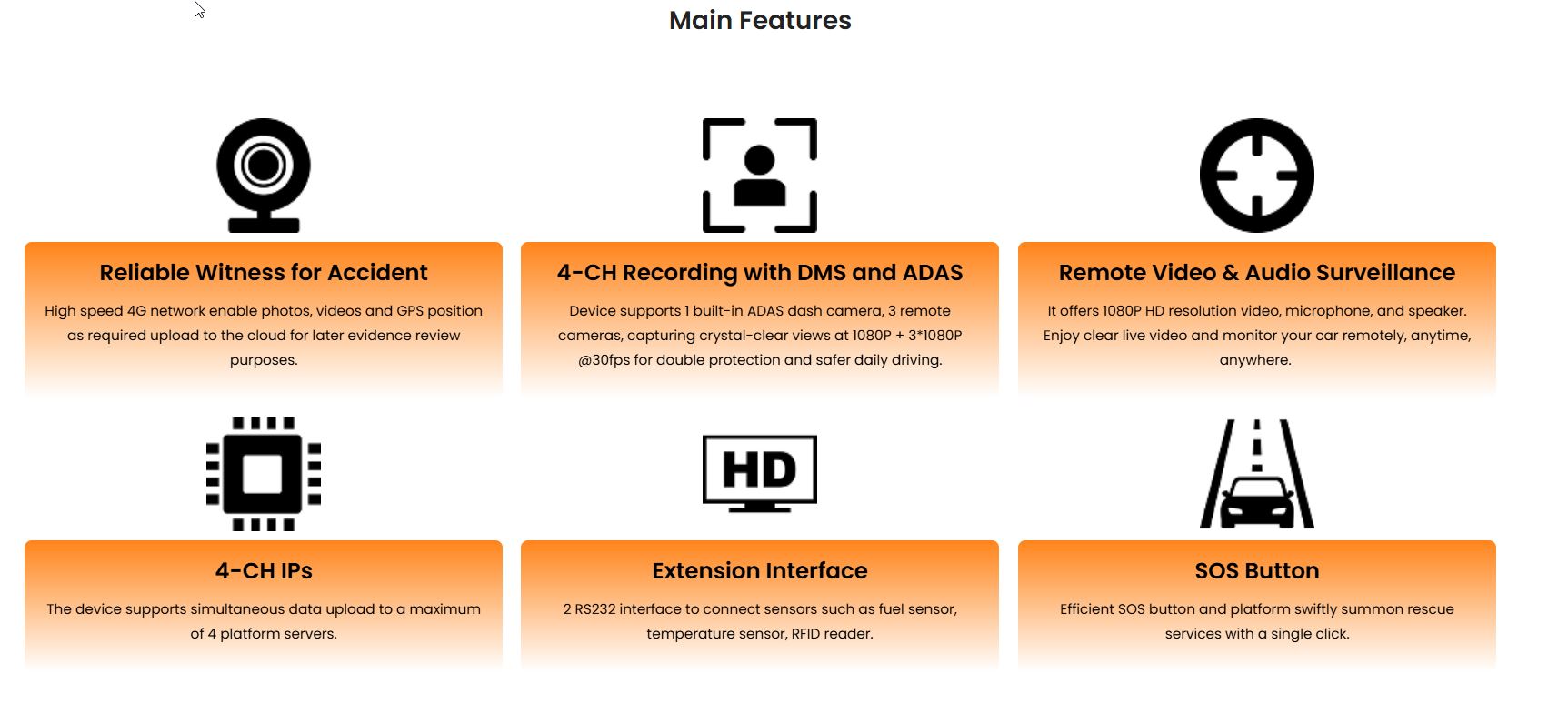 - It captures in-cabin audio and supports two-way voice alerts — providing passenger safety, driver-passenger communication, and clear incident logs.