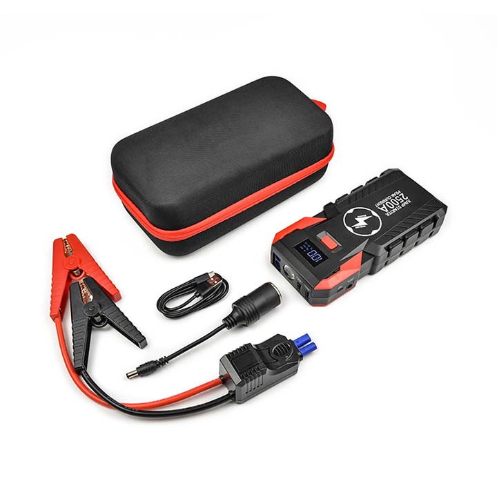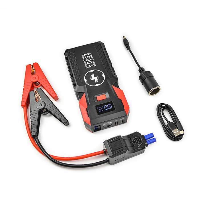 - The Professional Battery Jumper 23.800mAh-2500 Super-Power, with a peak current of up to 23,800 mAh and with a starting current of 2500A, allows you to start gasoline or diesel vehicles of up to 8.0L