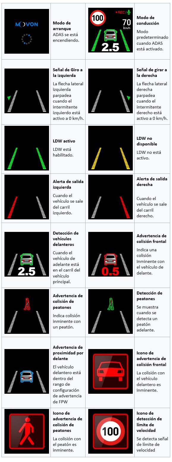 • El sistema ADAS informa al conductor mediante advertencias sonoras y visuales.