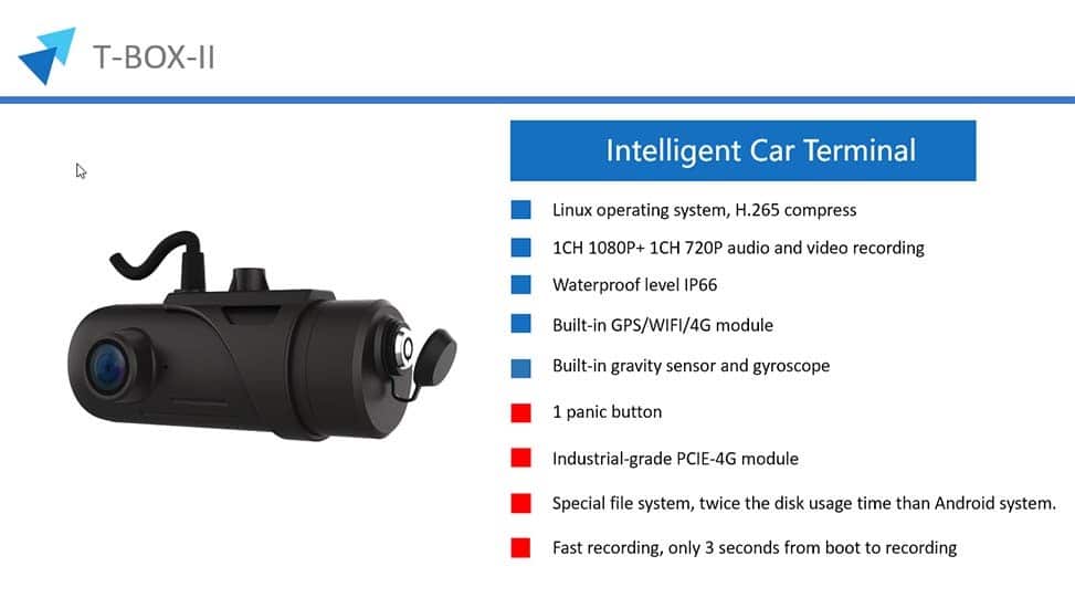 - Modelo on-line con SIM: 12 meses de servicio con conexión de datos con seguimiento GPS, Video en tiempo real desde APP y Plataforma Web, alertas en tiempo real ADAS/DSM y emergencias por botón SOS con video y voz bidireccional. El servicio ofertado incluye 12 meses de licencia de uso de la plataforma/servidor y SIM de datos con capacidad de 10GB por mes
